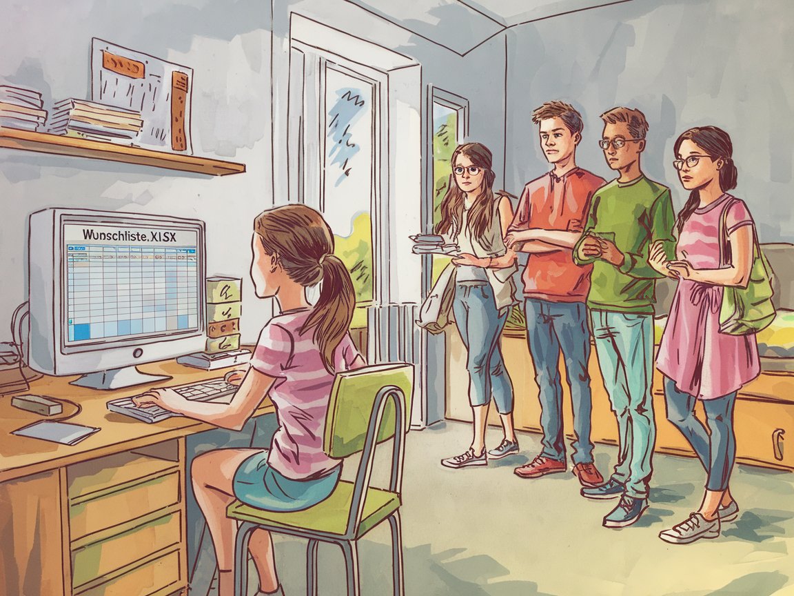 „Du könntest eine anonyme Wunsch-App erstellen“, schlug Lena vor. „Jeder wählt seinen Wunsch aus, ohne persönliche Daten anzugeben.“