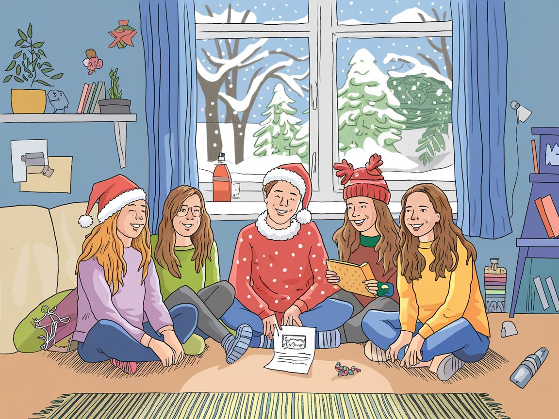 Jonas, der Geschichtsexperte, lehnte sich zurück. „Weißt du eigentlich, dass der Weihnachtsmann eine der ältesten Datenschutzverletzungen der Welt ist? Er weiß ALLES: Wer artig war, wer unartig war. Das ist eine Überwachungsmaschinerie!“