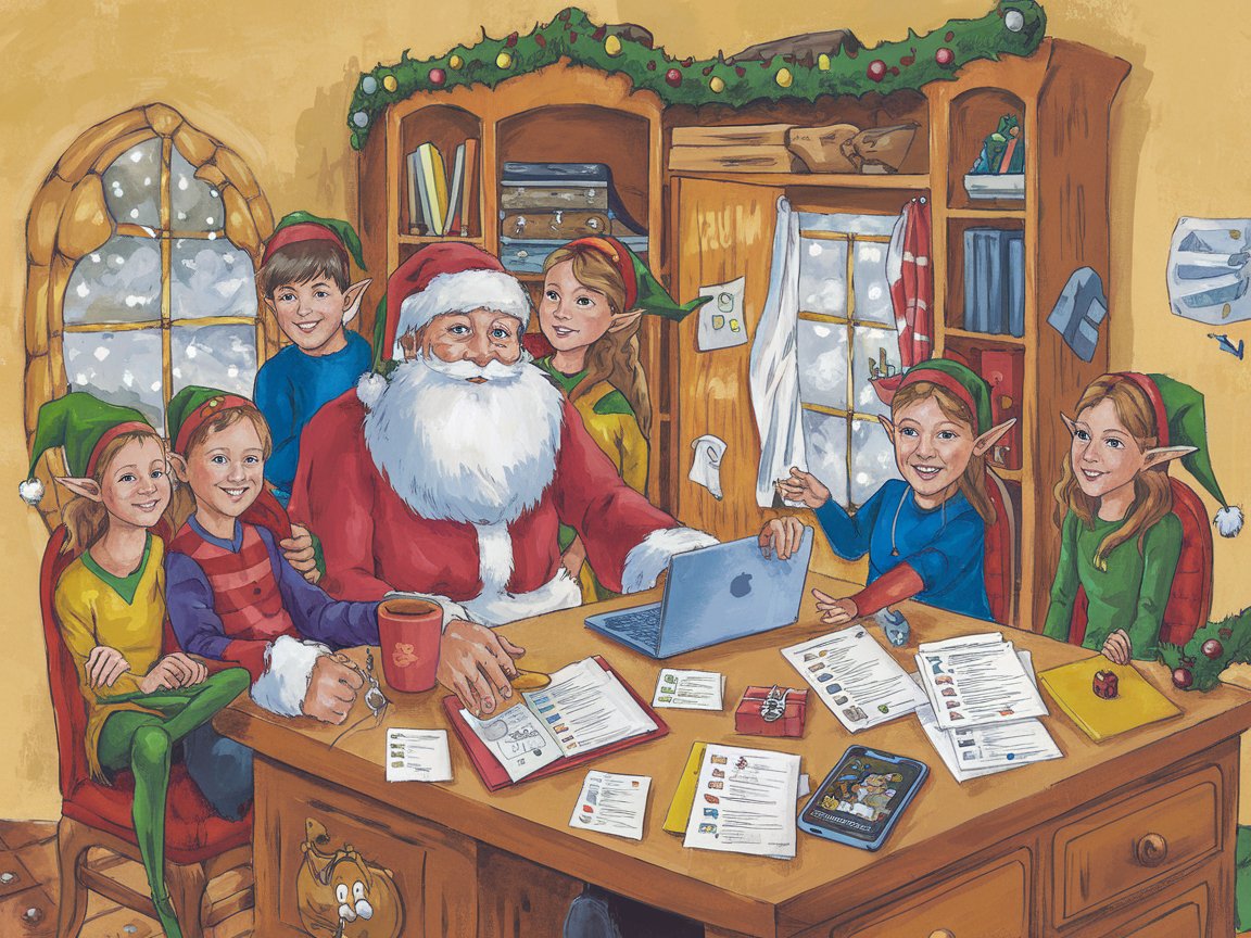 Emma, die Anführerin, stand auf. „Okay, Leute. Wenn wir helfen wollen, müssen wir herausfinden, wie Santa seine Daten speichert. Und vor allem: Ob er uns eine saubere Datenschutzerklärung geben kann.“