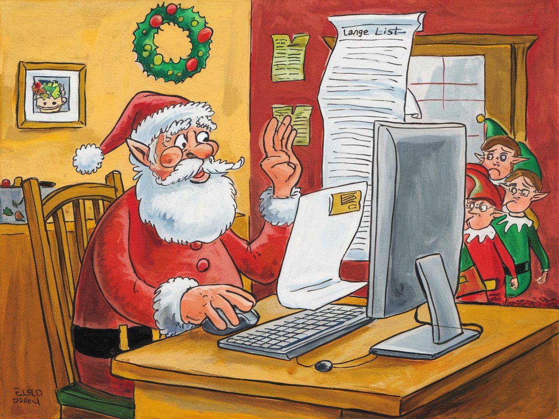 Santa war kein Freund von Bürokratie. Er war ein Macher, ein Packer, ein Geschenk-Spezialist. Aber jetzt saß er in seinem Büro, seine Brille schief auf der Nase, und starrte auf eine lange Liste von DSGVO-Vorgaben.